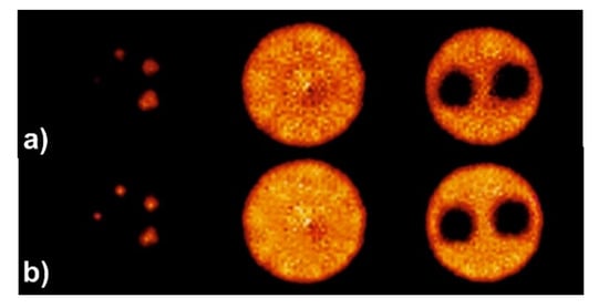 - Qi, J.; Leahy, R.M. Iterative reconstruction techniques in emission computed tomography. Phys. Med. Biol. 2006, 51, R541. [Google Scholar] [CrossRef]
