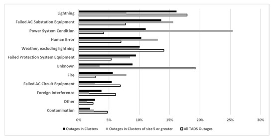 - Schaller, J.; Ekisheva, S. Leading Causes of Outages for Transmission Elements of the North American Bulk Power System. In Proceedings of the PES General Meeting, Boston, MA, USA, 17–21 July 2016. [Google Scholar]