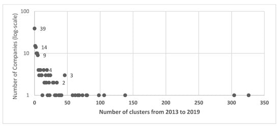 | Cluster Size | 2013 | 2014 | 2015 | 2016 | 2017 | 2018 | 2019 | 2013–2019 |
