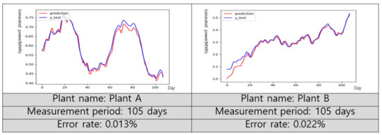 After learning, the training result was about 0.000 MSE of the error rate and the test result was about 0.015 RMSE of the error rate, which has a good prediction performance.