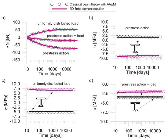 where and have been derived in the previous section (see Equations (11) and (13) or Equation (22)) and is the inelastic strain increment in each time step, such as the shrinkage strain or thermal strain [16]. This incremental stress–strain relation represent the quasi-elastic response of a non-aging kelvin chain that approximates a non-aging creep function .