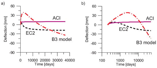 In 2008, the American Concrete Institute (ACI) recommended the procedure for the prediction of creep and shrinkage in its code provisions. The most recent version, labeled as 209R-92, was published in 1992 and reapproved in 2008 [44,45]. This procedure is applicable to normal weight and all the light weight concretes (using both moist and steam curing and Types I and III cement) under the standard conditions. Correction factors are applied for conditions which are other than standard. For this model