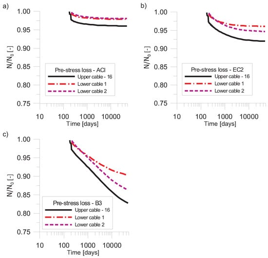 - Pisani, M.A. Behaviour under long-term loading of externally prestressed concrete beams. Eng. Struct. 2018, 160, 24–33. [Google Scholar] [CrossRef]