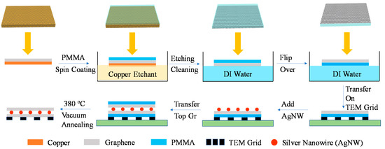 Schematic procedures of free-stand Gr/AgNW/Gr composite. PMMA, poly (methyl methacrylate).