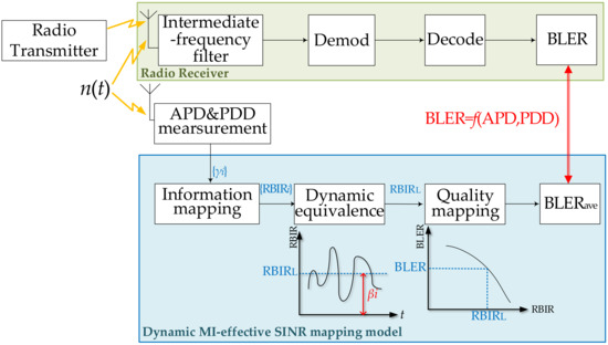 This paper is organized as follows. In Section 2, we propose the methodology to supervise the interference effect of RSTT, and a general dynamic MI-effective SINR mapping (MI-ESM) model is proposed based on the statistical characteristics of pulsed disturbances. Then, in Section 3, a MI-based metric is analyzed to indicate the interference impact on encoded transmission under time-varying disturbances. Furthermore, the impact on RSTT by different disturbances is analyzed based on the APD and PDD in Section 4. The evaluation result is verified by the simulation in Section 5. Section 6 concludes the paper.