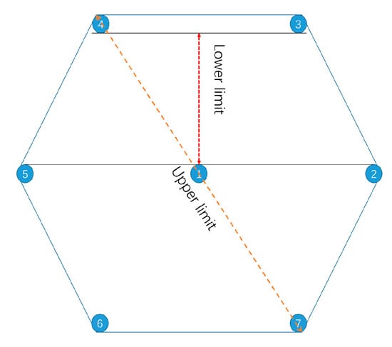In fact, the size of the particle matters because the size of the particle affects whether it is suitable for the sensor. The geometric distribution of seven-core end defines the size of the measurable particles as shown in Figure 9. Considering a spherical particle, theoretically, for the upper limit of particle size, the particle should not completely block the hexagon formed by seven cores as the sensor signal may not contain enough valid details of velocity information, so the diameter of the particle should not be larger than the diagonal length (91 μm) of the hexagon formed by the seven cores. For the lower limit of particle size, the particle should not be too small to pass through the gap among cores without passing through any cores, in order to prevent the sensor from measuring any signal. According to the requirement, the calculated distance of the gap is 28 μm, so the lower limit of particle diameter is 28 μm. Hence theoretically, a spherical particle whose diameters range is from 28 to 91 μm is measurable. Please note that the above estimation is based on the ideal case that the particle is spherical. In reality, non-spherical particles not within the above sizes may also be measured as the projection of non-spherical particles and may meet the requirements.
