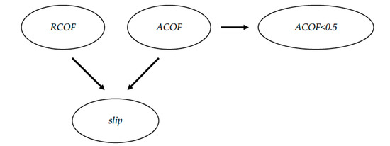 - Represent model as a directed acyclic graph. Three nodes were created: RCOF, ACOF, and slip. Directed edges were added from ACOF and RCOF to slip.