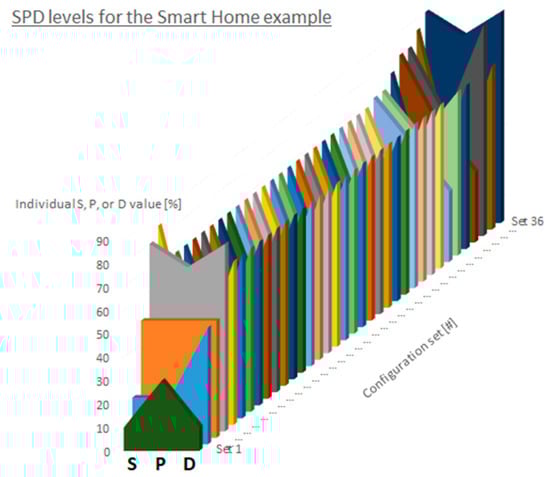 The SPD evaluation is a function of separation among the possible threats and the defended assets. Each property’s value falls in the range of 0–100, with 0 represents no defense and 100 full coverage and separation among the assets and threats. It has to be noted that the absolute SPD of ⟨100,100,100⟩ does not guarantee absolute protection. This designates that all required defense mechanisms have been deployed for all possible interaction points and set correctly, based on the current set of known limitations (e.g., CVE bulletins or CERT reports). Higher rating reveals redundancy of defense mechanisms, as well as, higher operational/implementation expenditures.