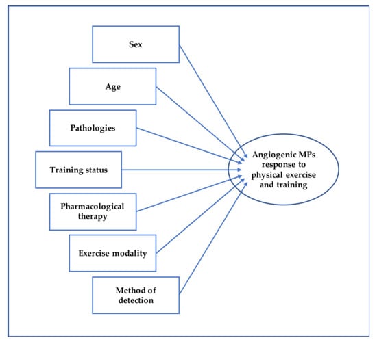 Overall, the numerous studies show contrasting results regarding the qualitative and quantitative changes of MPs in response to acute physical exercise and to exercise training as well. Such divergent conclusions could be due to the heterogeneity of the studies, as they involved different samples in terms of age, sex, training status, possible pharmacological therapies [133], and pathologies [93] (Figure 3). More standardized and harmonized procedures are needed to compare the studies and obtain definitive data on the release of MPs with angiogenic potential in response to physical exercise.