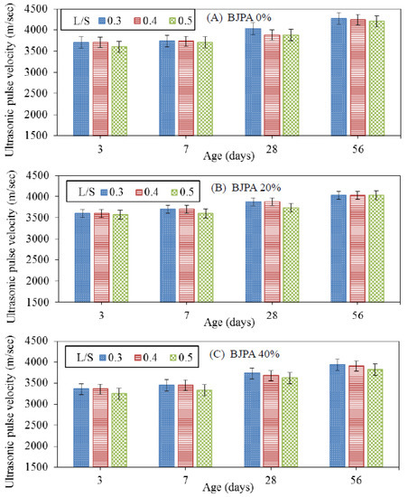 The ultrasonic pulse velocity of the BJPA–GGBFS composite geopolymer.