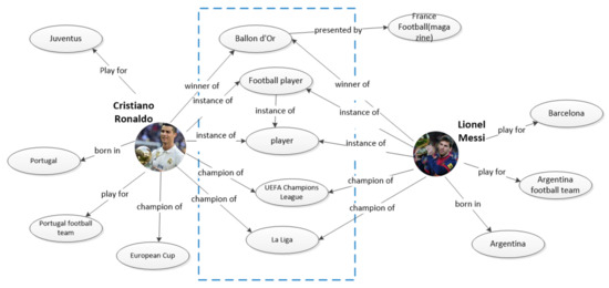 Illustration of C.Ronaldo and Messi connected through knowledge entities.