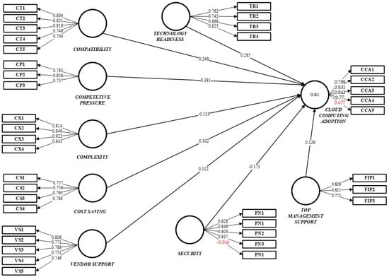 Top management support [18] refers to the top management’s attitude regarding the concerned technology as well as the extent of support given to the adoption. In terms of a strategic perspective, the successful implementation of CC in HEIs depends on the capabilities of top leadership or management to drive the change from traditional deployment to CC through an official pro-cloud strategy [148]. The decision-makers’ awareness and consensus are vital. Their support will ensure what cloud services are needed and what type of cloud deployment is best for HEIs settings. To do that, the decision-makers have to understand the benefits of cloud-based services, the value they can add to the educational services, and how to migrate to the CC environment [149]. Accordingly, it is hypothesized that: