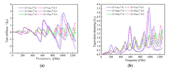 The effect of Poisson’s ratio of pile shafts on the longitudinal impedance of pile shafts: (a) true stiffness; (b) equivalent damping.