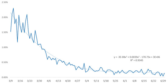 This paper evaluates the fitting effect of the model by calculating the deviation between the simulated value and the real value (Table 2). The average deviation of the model in the past 90 days was 0.86%, and the maximum deviation was controlled within 2.95%. Overall, the fitting effect of the model was very good and, to a great extent, largely simulated the development of the Italian epidemic.