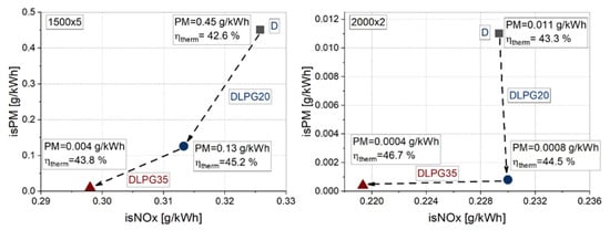 - It is worth highlighting that LPG blends are very effective in PM emission suppression that is about 90–95% at very low NOx targets. Acceptable penalties on HC and CO are detected. Based on the presented results, DLPG20 is the best fuel compromise between engine performance and emissions at a constant engine setting.