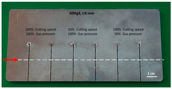 Aluminum and its alloys exhibit a high strength-to-weight ratio, corrosion resistance and weldability. Given to their considerable properties, Al-alloy sheets are used to produce structural parts for industrial applications in aeronautic, automotive and other relevant technological fields. Aluminum alloys are cut with the use of inert gas, usually nitrogen. More specifically, AlMg3 is an aluminum–magnesium alloy (5xxx series), suitable for cold-forming and welding, which exhibits better corrosion resistance and higher mechanical properties than pure aluminum. As for pure aluminum, AlMg3 is characterized by high thermal conductivity. Heat transfer plays a critical role in laser cutting performance. Since thermal conductivity refers to the rate at which heat is removed from the cutting area, low thermal resistance increases heat dissipation, resulting in lower energy available to the machining and, consequently, higher energy consumption and loss of efficiency. Moreover, heat removal may result in cooling of the molten metal on the underside of the kerf, tapered edge and slag formation [18]. Furthermore, light reflective metals, such as aluminum alloys, may reduce the maximum cutting speed and require more power density to initiate the cut [5].