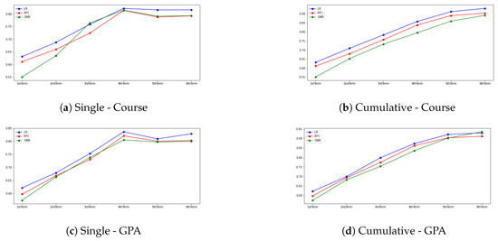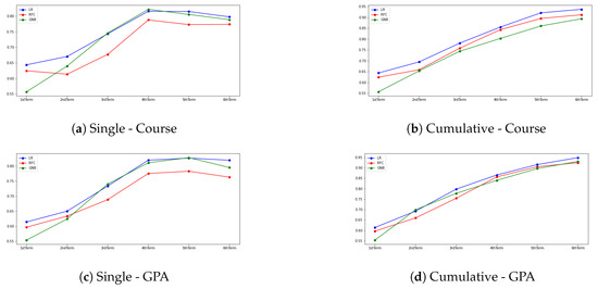 by GPA achieve higher accuracy scores at the later terms whereas the models where the academic records are used