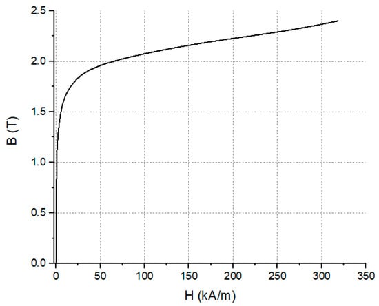 The material properties needed in electromagnetic analysis are listed in Table 1. The material of the top plate and yoke is Steel Plate Cold Commercial (SPCC), which has a nonlinear relationship between B and H. The relationship between B and H can be expressed as