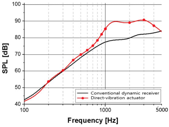 SPL comparison between dynamic receiver and direct-vibration actuator.