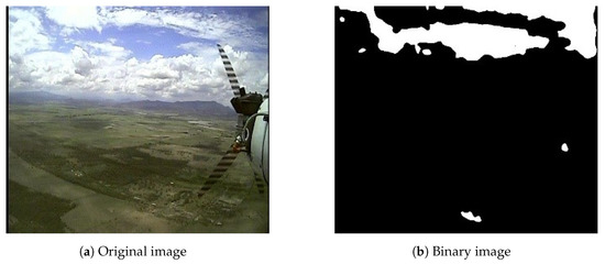 Most of the research done on cloud detection is ground-based, where clouds are captured with instruments that obtain continuous all-sky images at pre-defined time intervals [12,13]. For a UAV, it is impossible to keep these conditions since the update intervals of information need to be shorter. Moreover, algorithms should not have a high computational cost, because onboard computers may not have the same processing power and memory capabilities as an off-board station. Also, a computer with high processing power in a UAV would require a higher demand for energy, which would require batteries with higher capabilities increasing the UAV weight, affecting the fuel consumption of the aircraft negatively.
