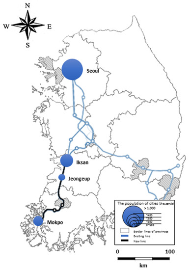 - Park, M.S.; Kim, Y. The impacts of high speed train on the regional economy of Korea. Korean J. Appl. Stat. 2016, 29, 13–25. [Google Scholar] [CrossRef]