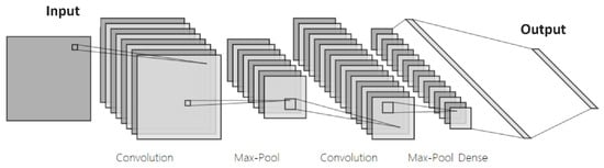 An artificial neural network is an algorithm that simulates the human visual nervous system. A convolutional neural network is a deep learning algorithm built on traditional artificial neural networks [25]. It is also the first learning algorithm to be successfully used to train a multilayer network. A convolutional neural network includes an input layer, convolutional layers, downsampling layers (also known as pooling layers), connected layers and an output layer, as shown in Figure 1 [26].