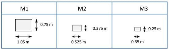 A mesh sensitivity analysis was carried out on the F3 façade (see label in Figure 9). Three block dimensions were considered: a coarse mesh M1 with rigid blocks three times larger than the real ones, refined meshes M2 and M3 with rigid blocks width and length two and three times smaller than the first one respectively.