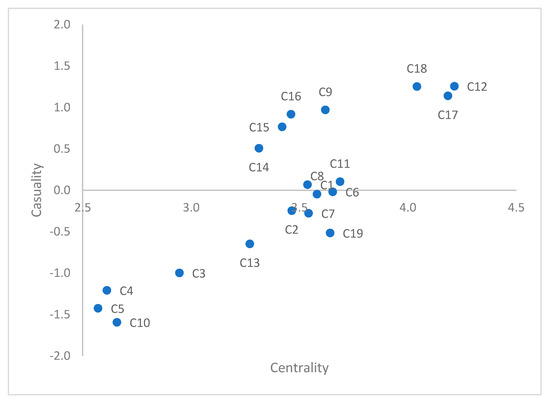 According to the order of centrality, the factors are C17, C18, C12, C11, C19, C9, C6, C7, C16, C13, C8, C2, C1, C15, C14, C10, C3, C5, and C4 from the largest to the smallest.