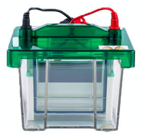 Electrophoresis is an analytical technique used by professionals in the area of industrial chemistry to obtain protein profiles and the analysis of proteins. Its objective is to separate the proteins by means of an electric field in a chamber device (see Figure 2). This technique is carried out in poliyacrylamide gel (PAGE), in which the protein samples are placed and then, the electric field is applied. Sodium dodecylsulfate (SDS) is also used in the natural charge of the proteins, so they can be computed and separated on the basis of their mass. Therefore, SDS-PAGE electrophoresis evaluates the purity and estimates the atomic weight of the proteins [1].