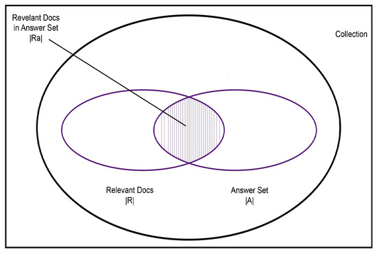 To obtain precision, the response set () and the response set (A) [18] are therefore used as the fraction of the documents retrieved with the relevant ones.