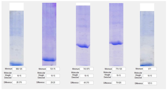 From a technical point of view, it is possible to reproduce the previously detailed experiments. This is possible, through any other collection of scanned electrophoresis images. The images can be produced in an industrial chemistry laboratory. Protein samples can be extracted from food, plants, or tissue samples from various sources. Once obtained, they can be converted to gray levels and subsequently analyzed by a transformed wavelet Daubechies. The molecular weight can be calculated using the equivalence values shown in Table 2 proposed in this article. These equivalences cover the molecular weight readings or ranges comparable to the most commonly used commercial markers using the minimum of the coefficient wavelet transforms for all paradigms as main parametric statistic.