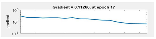 In Figure 18, we observe the gradient of the neural network, showing that the learning in epoch 17 stabilizes and begins to drop, so the training stops to prevent learning from falling to a local minimum.