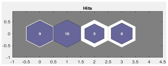 There are several variants such as self-organization maps (SOM) or back propagation, among others. Kohonen’s model (SOM) is based on the analogy of a topographic map, where we have n units of groups within an arrangement in one or two dimensions [19]. This model uses the vector of weights as input. The neural network model produces an associated particular group. During the training phase, the vector that most closely matches the input pattern is chosen as the winner neuron. In Figure 5, it is shown how the neighbors are grouped and a winning value is obtained forming a neighborhood.
