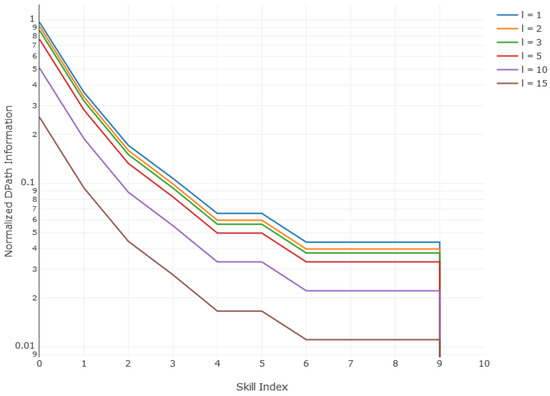 Normalized DPath Information vs. Skill Index by composition index, l.