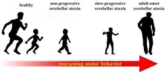 The most common motor outcome of cerebellar lesions is ataxia (from the Greek word αταξισ, i.e., lack of order). Ataxia is a neuropathological state consisting of lack of movement coordination. This condition is characterized by hypotonia, dysmetria, asynergy, dyschronometria, and dysdiadochokinesia [11,19]. In addition, the cognitive-affective alterations linked to this pathology lead to a lack in the organization of thought, called “dysmetria of thought”, comprising impairment of executive functions (abstract reasoning, working memory, planning) and difficulties with spatial cognition [20]. Nevertheless, the “lack of order” mainly affects the control of balance and gait.