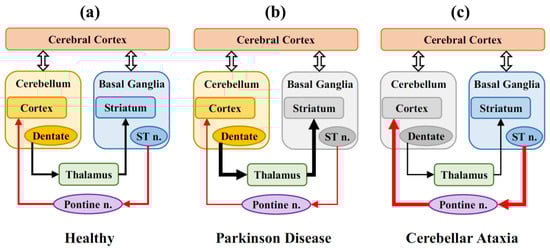- Hoshi, E.; Tremblay, L.; Féger, J.; Carras, P.L.; Strick, P.L. The Cerebellum Communicates with the Basal Ganglia. Nat. Neurosci. 2005, 8, 1491–1493. [Google Scholar] [CrossRef] [PubMed]