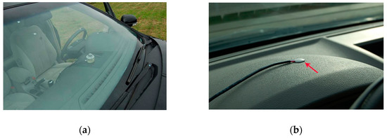 Radiation and temperature sensors: (a) solar radiation in the cabin; and (b) dashboard temperature.