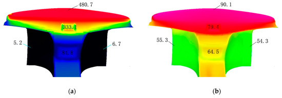 Non-uniform distribution of weathering external factors on instrument table at 12:00 a.m. on 25 June: (a) non-uniform distribution of solar radiation intensity (W/m2); and (b) non-uniform distribution of temperature (°C).