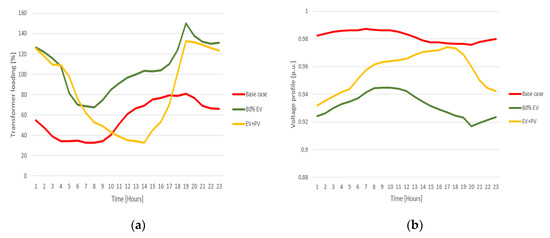 This section will provide the results and analysis of the different cases of the EV penetration in urban and rural networks, as well as the results of the effect of the installation of ultra-fast charging infrastructures on the elements of a commercial network.