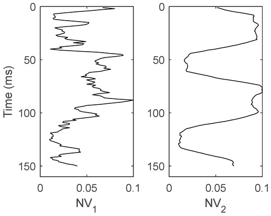 From the above equation, it can be seen that elastic parameters of the isotropic background should be known for the accurate inversion of weak anisotropic parameters and fracture density. The , , and values for all layers of interest were obtained from well logs using Backus averaging [34]. The forward problem has the simple form: