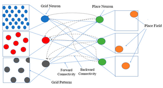 As per the biological brain research, the grid neuron works in collaboration with the place neurons. The connectivity between the grid and the place neuron is shown in Figure 3. The place neuron learns the grid neurons activation value through forward connectivity and in turn activates the grid neurons during localization through backward connectivity.
