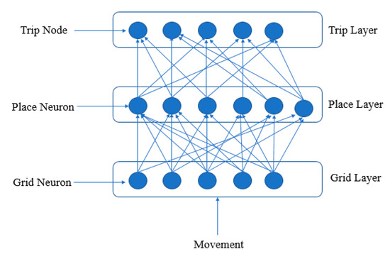 The mechanism of sensory information prediction is shown in Figure 13. The mechanism starts with the sensing of external information by the place neurons through the sensory neuron’s input. The place neuron matches within the threshold limit will be activated and recall their learned grid weight template. The grid weight template is the grid code that would tell the location in the environment or object. Once the agent obtains the location in the internal representation, it can generate the new grid code by the integration of recalled grid code with their body movement. The generation of new grid code would activate the place neuron whose grid weight template matches with the newly generated grid code (according to Equation (12)). The pseudo active place neuron will recall the associated sensory weight template, i.e., the prediction of sensory information from the body movement.
