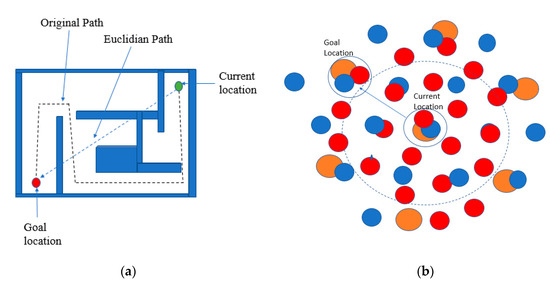 In the aforementioned mechanism of place neuron activation, the mechanism of calculating the inter grid point distances is crucial and complex as well. The calculation of a distance between the centers of any two interfered grid ring is shown below in Equation (10). The parameters of the equation are illustrated in Figure 12.