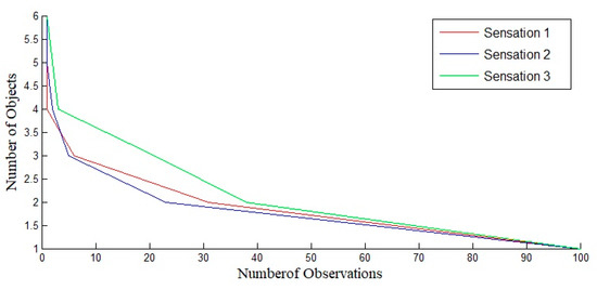 Since each object is a permutation of spatial sensations, therefore in the initial touch, the observed sensation will be present in almost every object. In the initial touch, every object will be activated. By the touch, the location in each active object will be obtained in the form of a grid code. The agent may even receive multiple locations in a single object having similar sensations that are present at multiple locations. The next touch would integrate the previous recalled grid code of each object with the hand motion, and predicts to be observed sensations. Next, the observed sensation will be compared with the predicted sensation of each object. The object which is having the same predicted sensation as observed will remain active, and others will be deactivated. In this way, after a few more touches, the number of objects converges to 1, and that single active object will be the recognized object. Similarly, in the observed results, the number of active objects is reduced to one with the increase of touches, as shown in Figure 21.The results are shown for three different starting locations, and each one took different numbers of touches to recognize the given object.