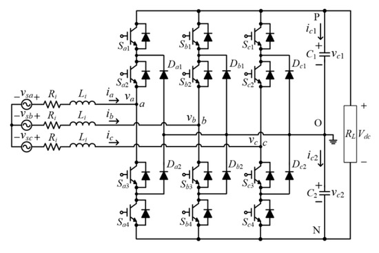Figure 1 shows a three-phase three-level NP rectifier. The ac input side of the circuit structure in Figure 1 gives an equation as