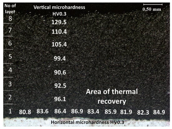 Microhardness distribution in the Al + Al2O3 composite coating obtained by LPCS []. Reproduced with permission from [Archives of Civil and Mechanical Engineering], Elsevier, 2016.