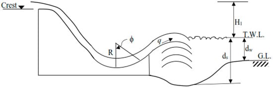 Estimating scour depth downstream of ski-jump bucket spillways has been studied in hydraulics laboratories over previous years. The Veronese formula, which suggests scouring as Equation (1), has been most widely used in scouring studies of these spillways [40]: