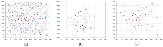 Wilson’s editing (ENN) removes all instances that are misclassified by the kNN rule. The Hart’s condensing (CNN) algorithm uses the concept of consistent subset to eliminate the majority class instances that are sufficiently far away from the decision boundary because these are considered to be irrelevant for learning. Analogously, the Tomek links (TL) [,] have also been employed to remove the majority class instances since, if two instances form a Tomek link, then either one of these is noise or both instances are borderline.