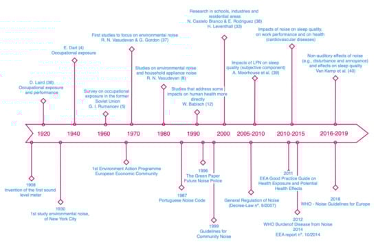 In the 1920s, research on the subject focused on occupational exposure and generally reported physiological changes such as pain in the hands, swelling, and increased vascular tone [,,]. Until the 1930s, it was believed that the effects of noise on health were restricted only to hearing loss. In a study published in the Journal of the Acoustical Society of America, Jüichi Obata et al. [] concluded that the effects of noise on human health went beyond hearing loss.