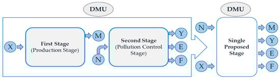 The number of DEA applications regarding pollutant services, as well as undesired outputs, is noteworthy. Separating ecological and technical efficiencies for power plants, Korhonen and Luptacik [] suggested an approach. They consider pollutants as the inputs in order to increase desirable outputs and decrease pollutants and inputs. According to technical aspects, Yang and Pollitt [] have considered several impossibilities features as undesirable outputs. In an experimental study, Zhang, et al. [] used DEA to assess the eco-efficiency of gross domestic products in China. Liu, et al. [] came across an approach to combine desirable and undesirable inputs and outputs. Chu, et al. [] emphasize on the eco-efficiency study of Chinese provincial-level regions, concerning each region as a two-stage network structure. The first stage is reflected in the production system, and the second stage is considered as the pollution control system. Regarding the pollution emissions as intermediate products, a two-stage DEA model is suggested to attain the eco-efficiency of the entire two-stage structure. Khalili-Damghani and Shahmir [] have considered emissions as an undesirable output in the efficiency assessment of electric power production and distribution procedure. Oggioni, et al. [] used DEA to evaluate energy as an input producing both desirable outputs (goods) and undesirable outputs (CO2 emissions). The exclusion of undesirable output does not appear to deliver a broad scale of the production procedure. Consequently, Zhou and Ang [] assess energy use efficiency in a combined production context of both desirable and undesirable output.